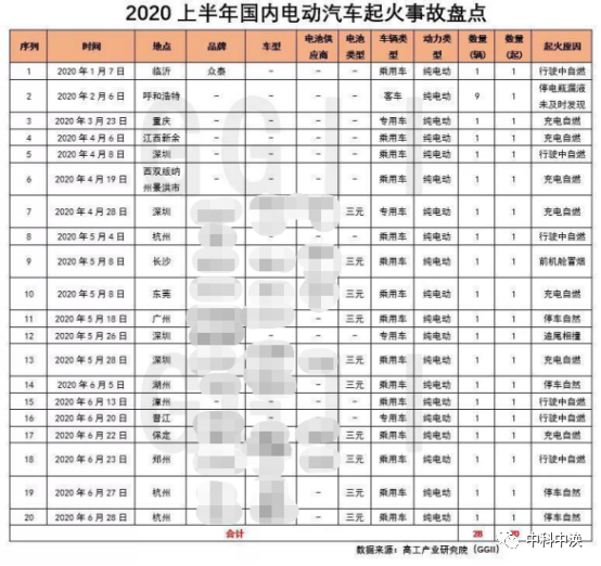 高工產業研究院(GGII)根據公開報道不完全統計,2020上半年國內共發生電動汽車起火事故20起,較去年同期下降31%;涉及車輛數目28輛,較去年同期下降22%,雖然國內電動汽車起火事故跟去年同期相比有所下降,但行業安全問題仍不容忽視。