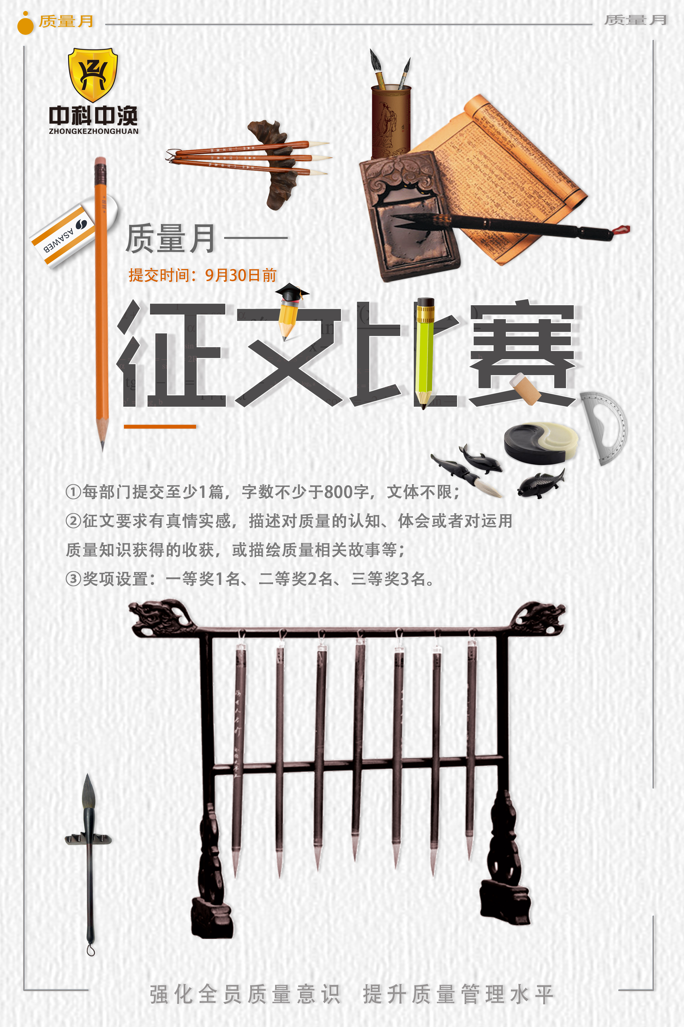 每年的9月份,全國都要開展“質量月”活動,今年的主題是“建設質量強國,決勝全面小康”。實踐證明,通過開展質量月活動,宣傳黨和國家的質量強化方針政策,對于強化企業的質量意識,推進質量建設,發揮著極其重要的作用。在今年“質量月”到來之際,中科中渙圍繞“強化全員質量意識,提升質量管理水平”主題開展活動。