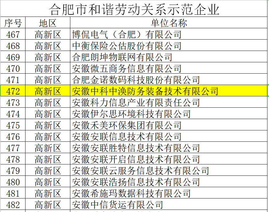 【中科中渙】榮獲合肥市和諧勞動關系示范企業