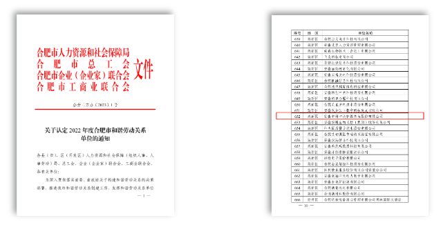 【中科中渙】榮獲2022年度合肥市和諧勞動關(guān)系認(rèn)定