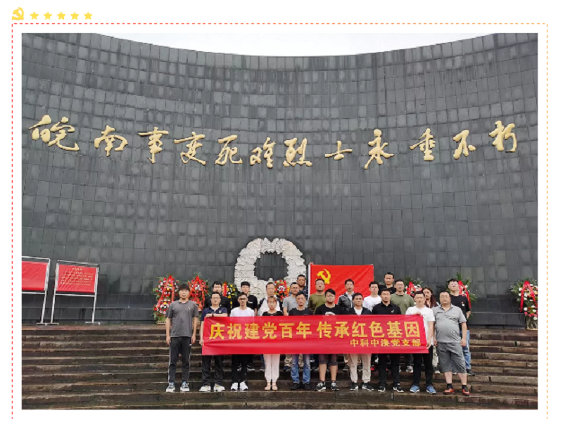 在建黨百年之際,為進一步增強新發展黨員的政治意識,堅定理想信念,繼承和發揚黨的優良傳統,以實干擔當的作風和優異的工作成績向黨的百年華誕獻禮,6月19日,“慶祝建黨百年,傳承紅色基因”——中科中渙黨支部集中宣誓活動在皖南事變烈士陵園莊嚴舉行。