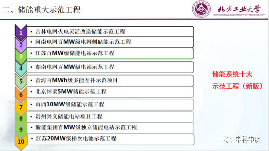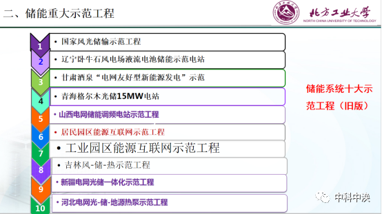 例如國家風(fēng)光儲輸示范工程、遼寧臥牛石風(fēng)電場液流電池儲能示范電站、在甘肅酒泉建立的電網(wǎng)友好型新能源發(fā)電示范,在青海格爾木的光儲15MW電站,在新疆河北有一體化的示范工程,以上幾個示范工程已經(jīng)運行五年到十年。例如吉林火電靈活改造,河南電網(wǎng)百兆瓦級電網(wǎng)儲能示范工程,北京懷柔有5兆瓦的區(qū)域電網(wǎng)應(yīng)急供應(yīng)這幾個都是剛剛投運或者是設(shè)計投運的。貴州有20兆瓦儲能電站解決區(qū)域電網(wǎng)問題。總之,不管是新的、舊的,證明了儲能確實給電網(wǎng)能提供一些服務(wù),也給了我們決心,所以大家要堅定儲能的信心。