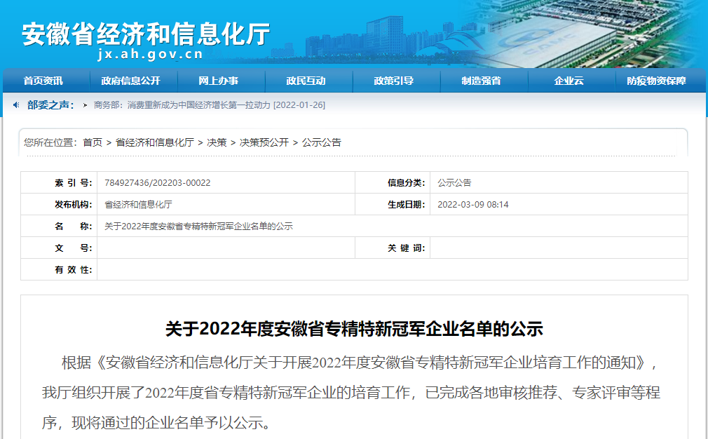 【中科中渙】入選安徽省專精特新冠軍企業(yè)