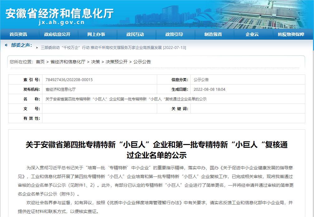 【中科中渙】榮譽再升級!中科中渙獲評國家級專精特新“小巨人”稱號